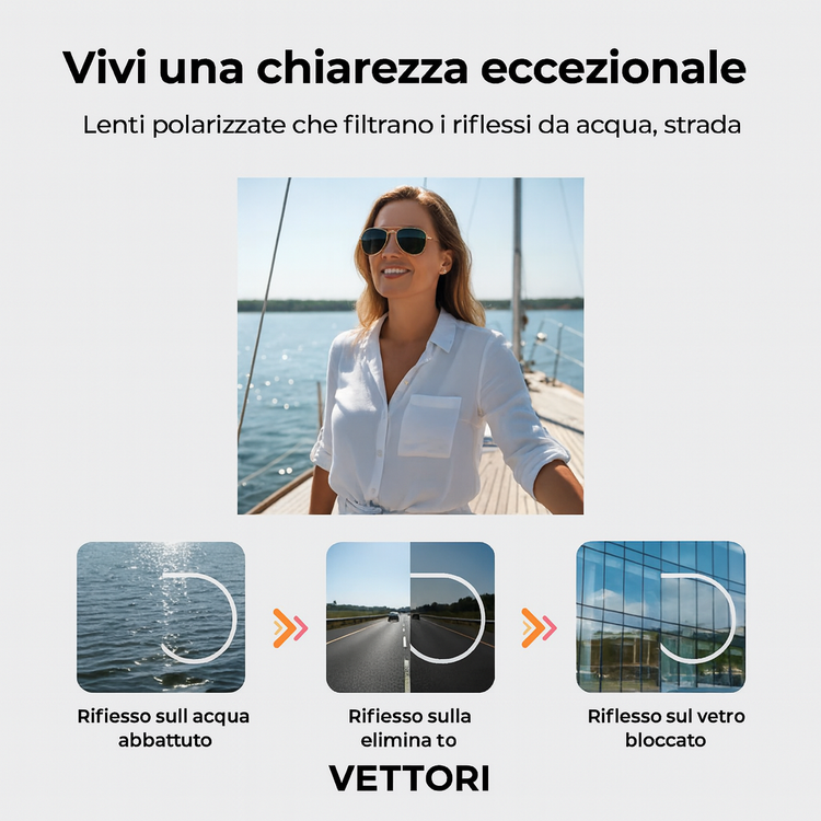 "Le lenti polarizzate sono incredibili — tutto è più luminoso e senza riflessi. Perfette per le giornate in spiaggia!"